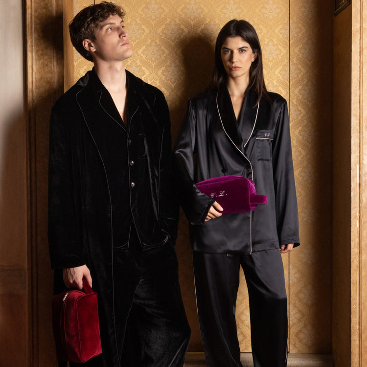 Lined inside and out in velvet, the Farnese toiletry bag embodies refined Italian elegance in everyday essentials. Defined by sleek piping, it keeps bathroom necessities with practicality and style, whether in the home bathroom or wherever it feels like home