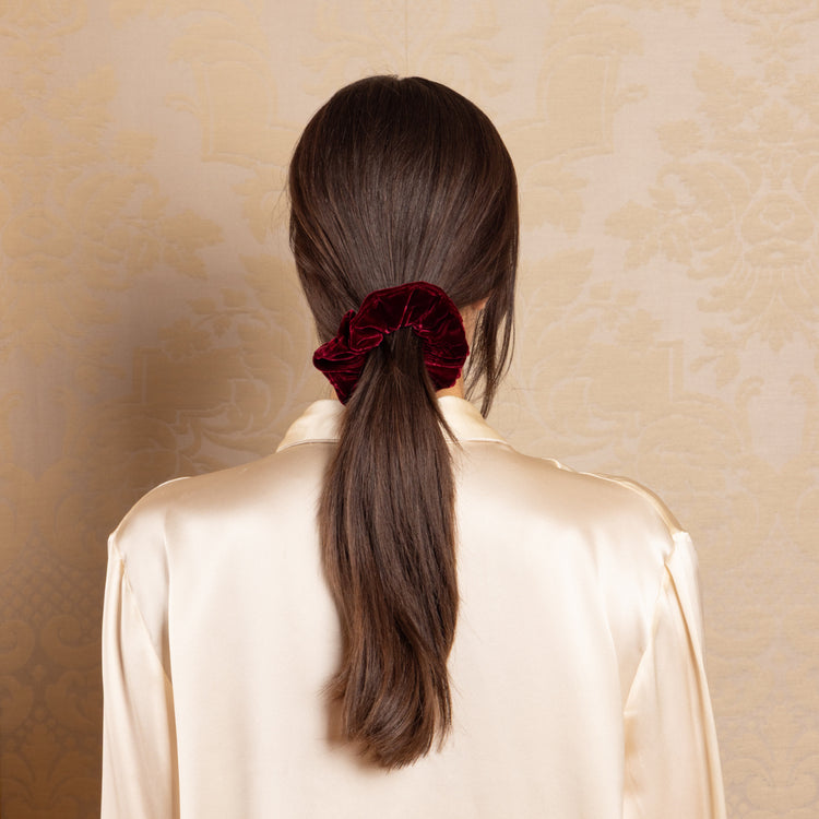 A curated set of five unique velvet scrunchies, each designed to elevate style and comfort. Soft on hair and skin, this collection adds variety and sophistication to daily routines, making every gesture a moment of quiet indulgence