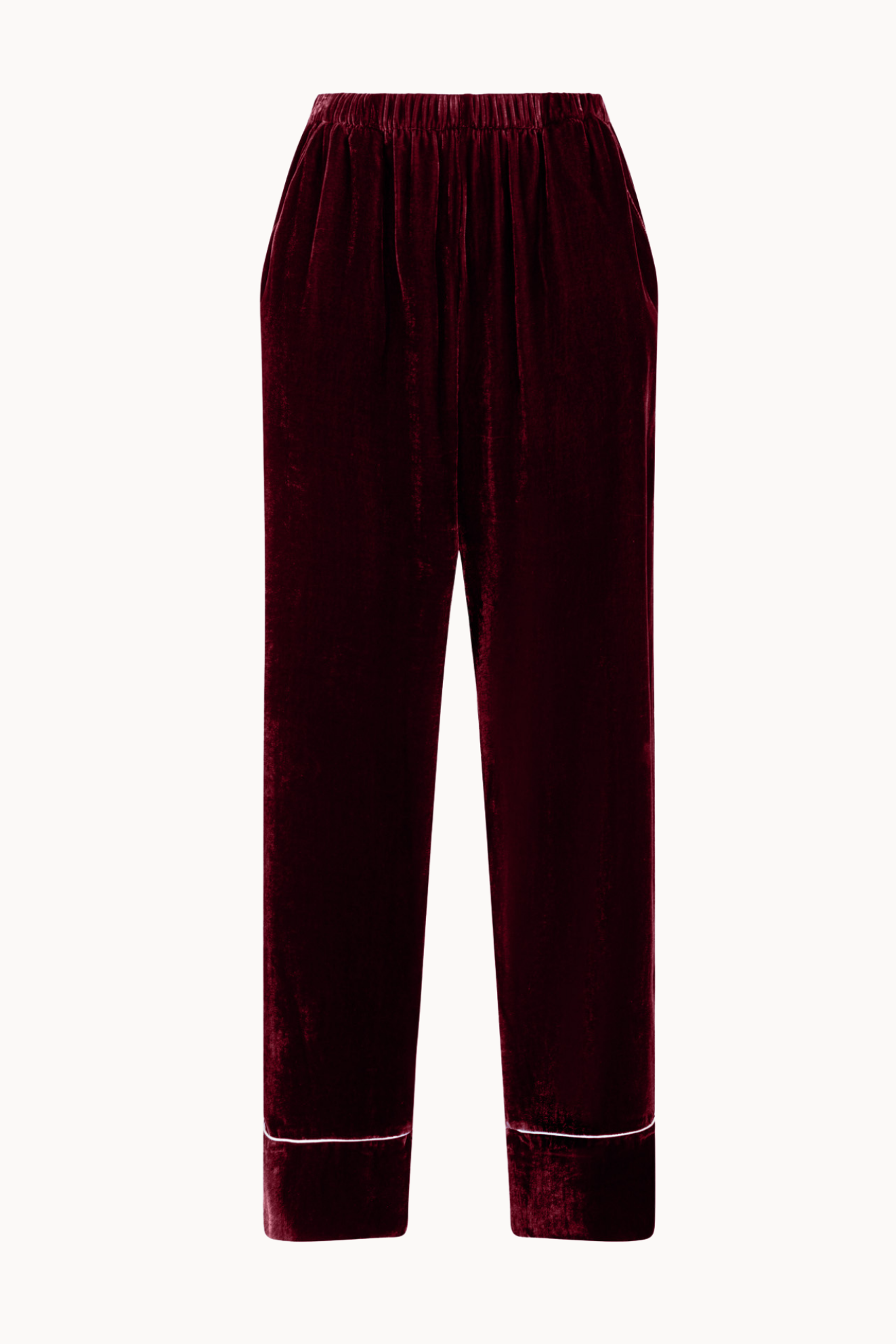 The Farnese trousers express understated elegance through a fluid, effortless silhouette. Crafted from plush Italian velvet, they bring warmth and comfort to the ritual of leisure, balancing ease and sophistication from slow mornings to late evenings at home.
