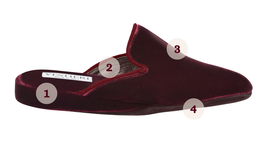 Thanks to a graceful and sophisticated silhouette, the Farnese, drawing from the majesty of Palazzo Farnese, delivers unparalleled style and comfort. Expertly crafted from premium velvet, it redefines the standards of what elegance means for slippers